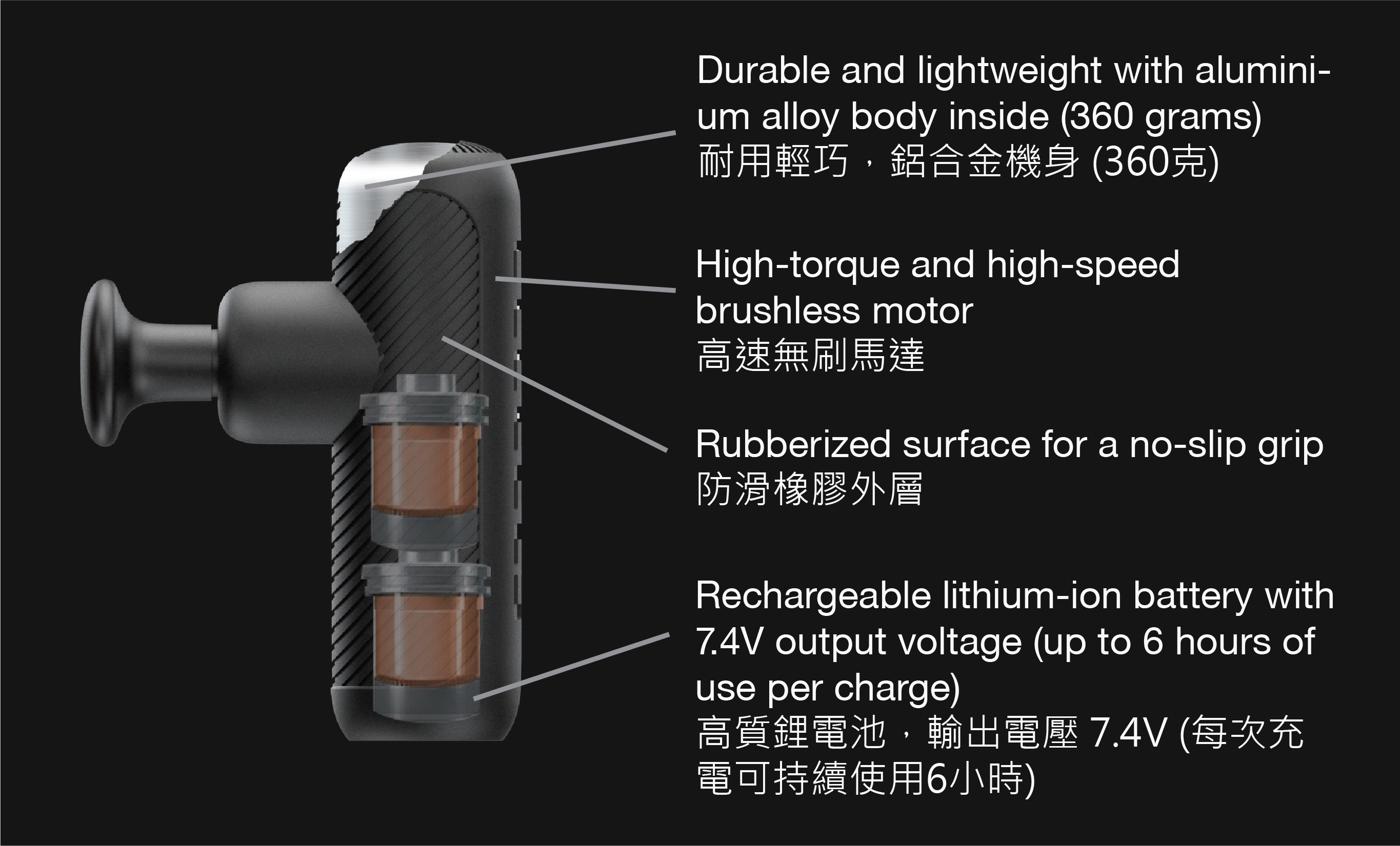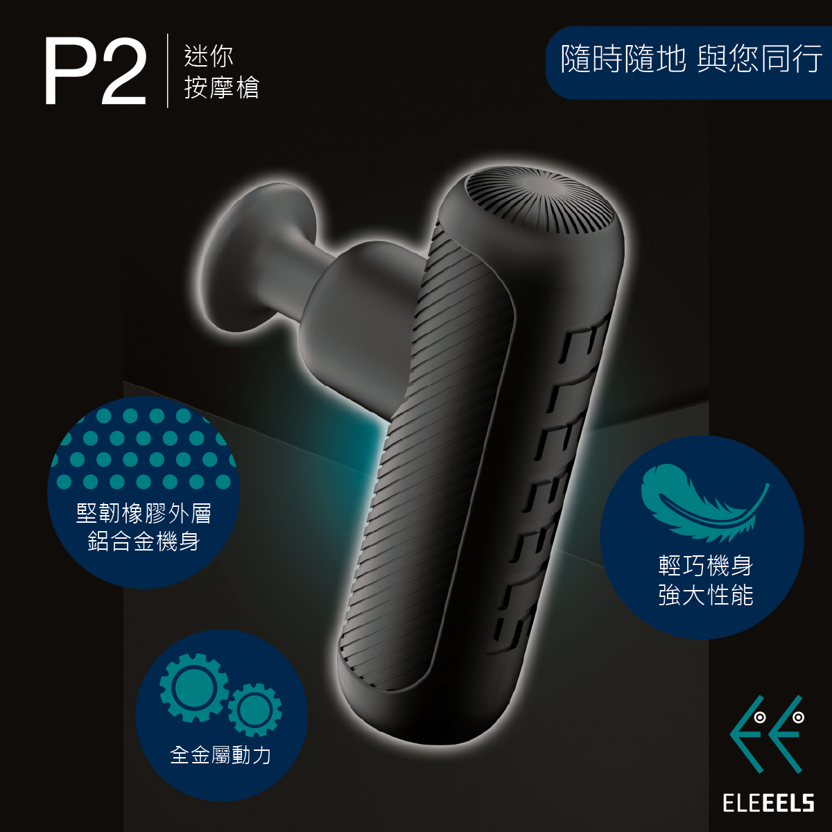 ELEEELS P2,始終堅韌不移,隨時隨地,與您同行。堅韌防滑橡膠外層,配上鋁合金機身 (360克),P2耐用而輕巧