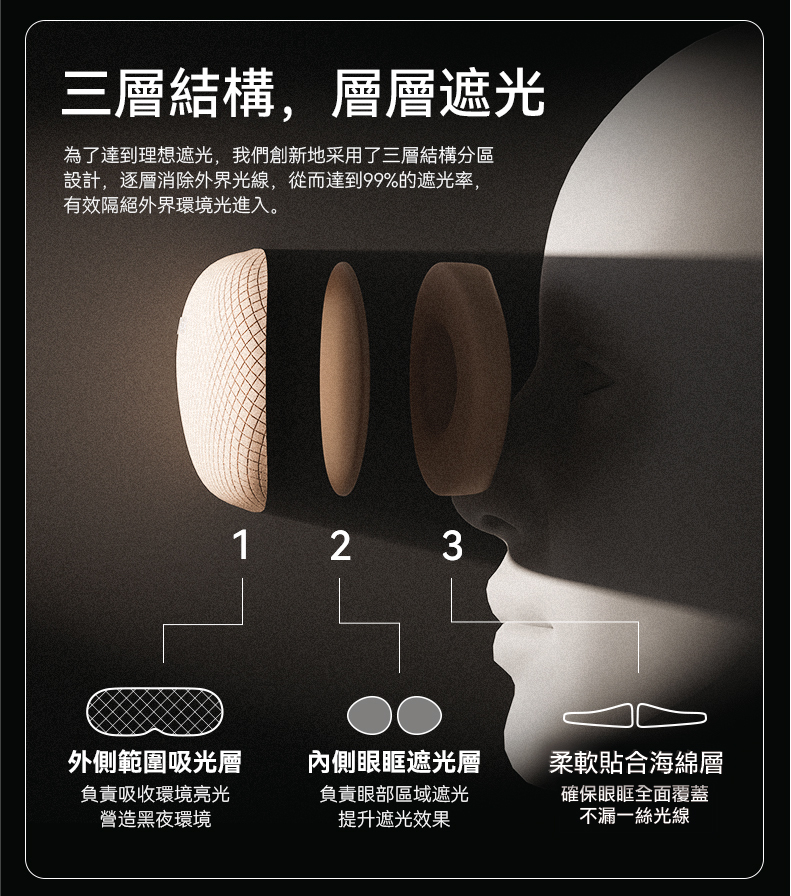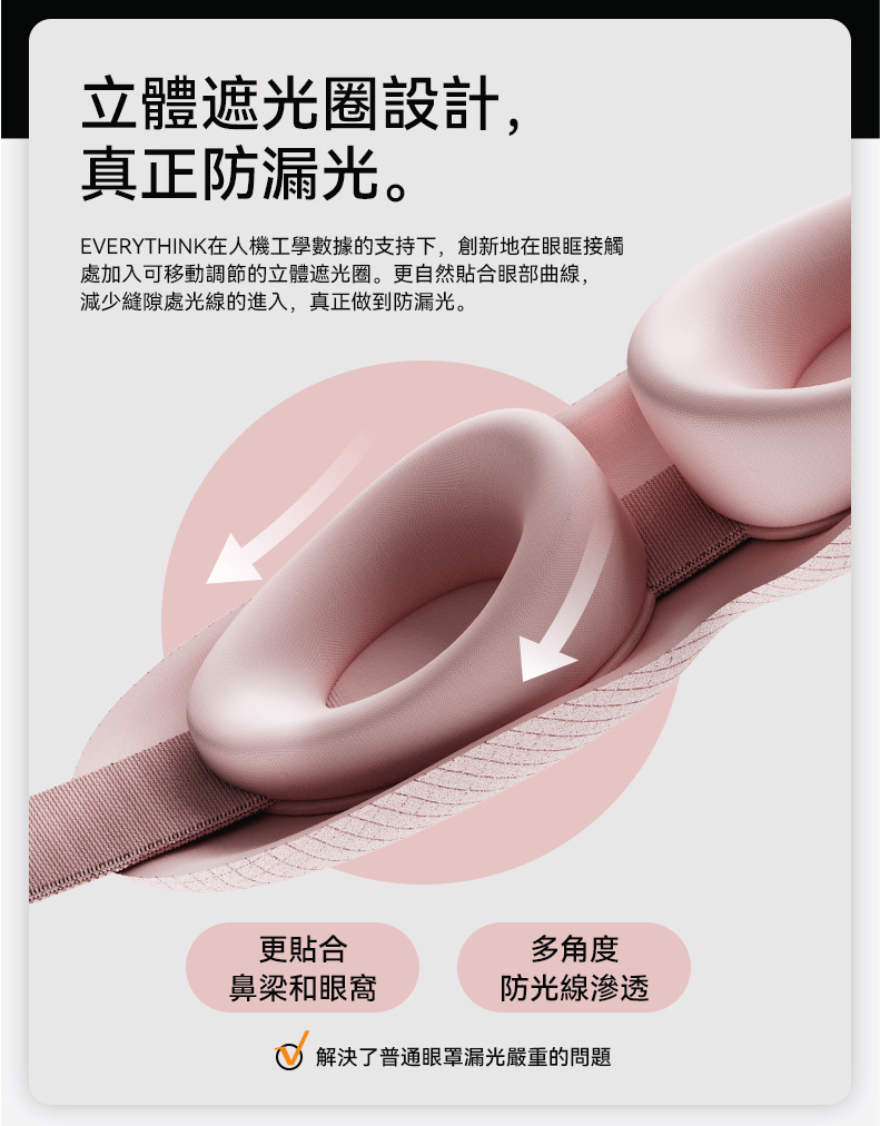 -人體工學圓弧3D設計遮光圈,多角度防光線滲透